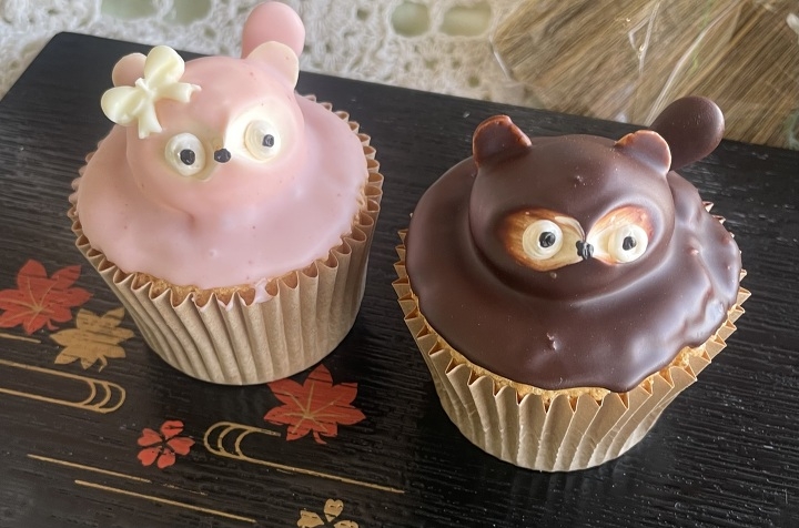 チョコレートとイチゴチョコレートの2種のタヌキケーキです。