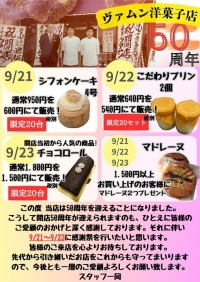 ヴァムン洋菓子店からのお知らせやお得な情報、新作商品のご紹介などを掲載してきます。